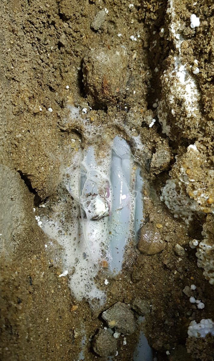 콘크리트 층이 젖어 있는 모습이 드러났습니다.