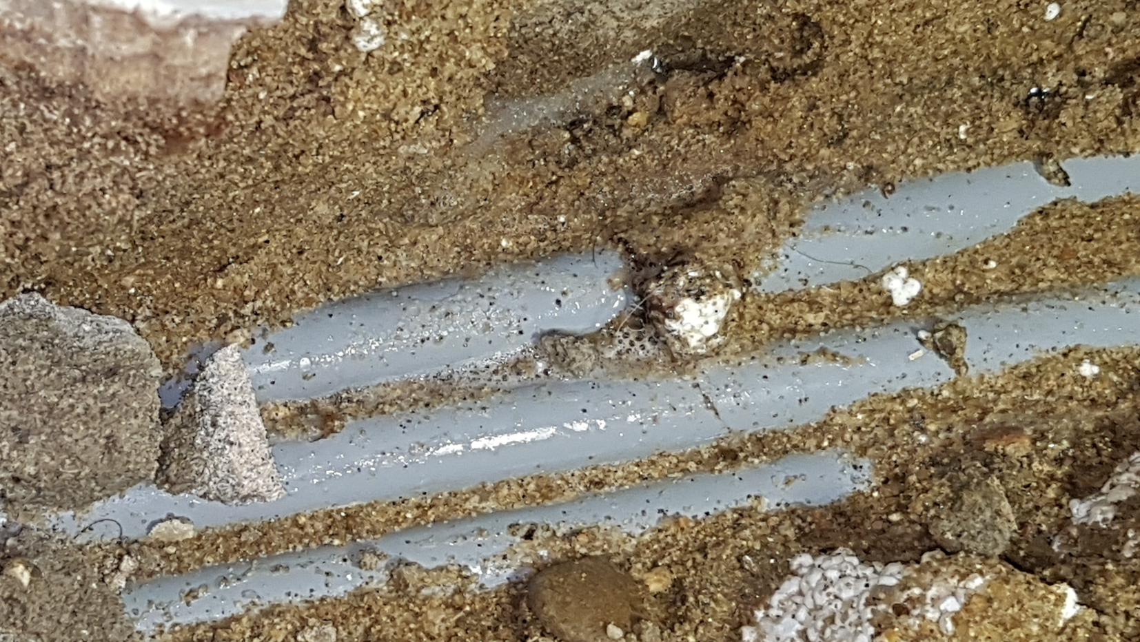 굴착을 진행한 끝에 온수 배관이 모습을 드러냈습니다.