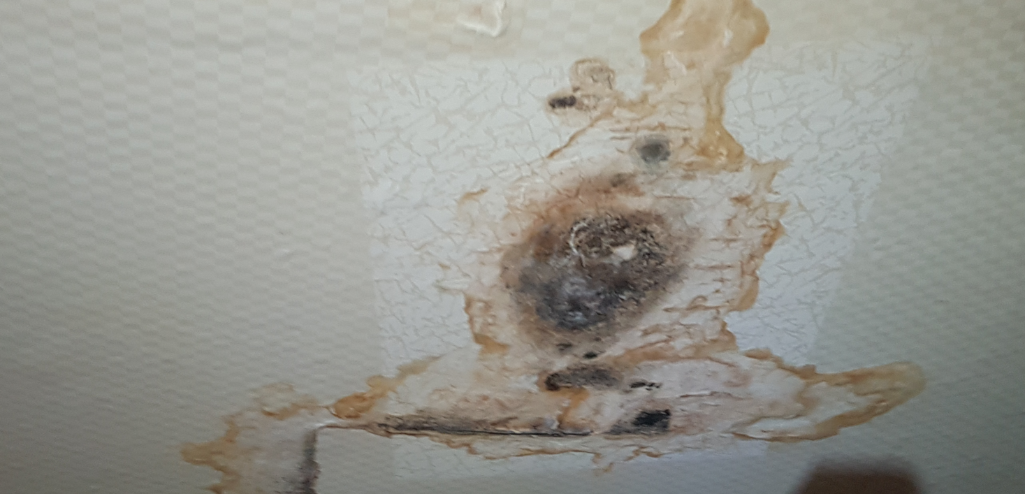 천장 벽지가 이미 무게를 버티지 못해 들떠 있었고