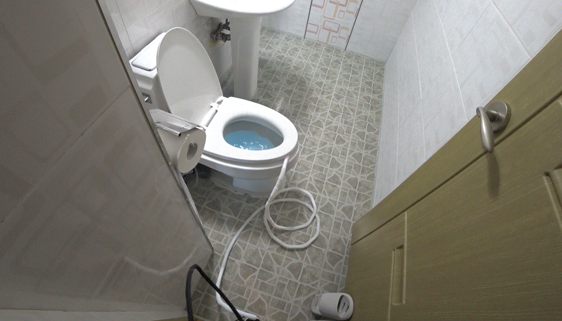 문제의 원인을 파악하기 위해 2층으로 올라가 화장실을 점검했는데, 그 순간…!