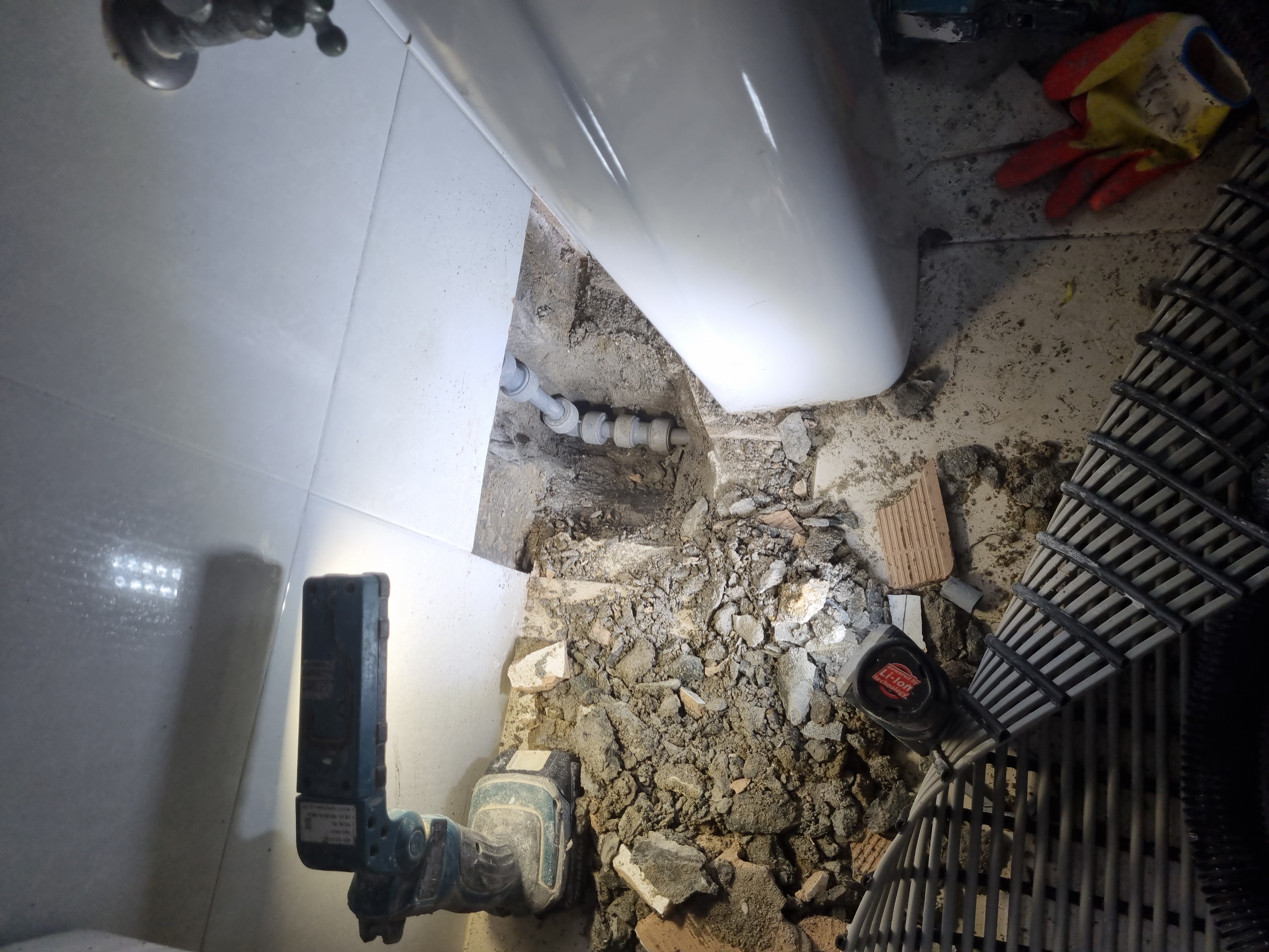 - 바닥 일부 철거 후 배관 교체