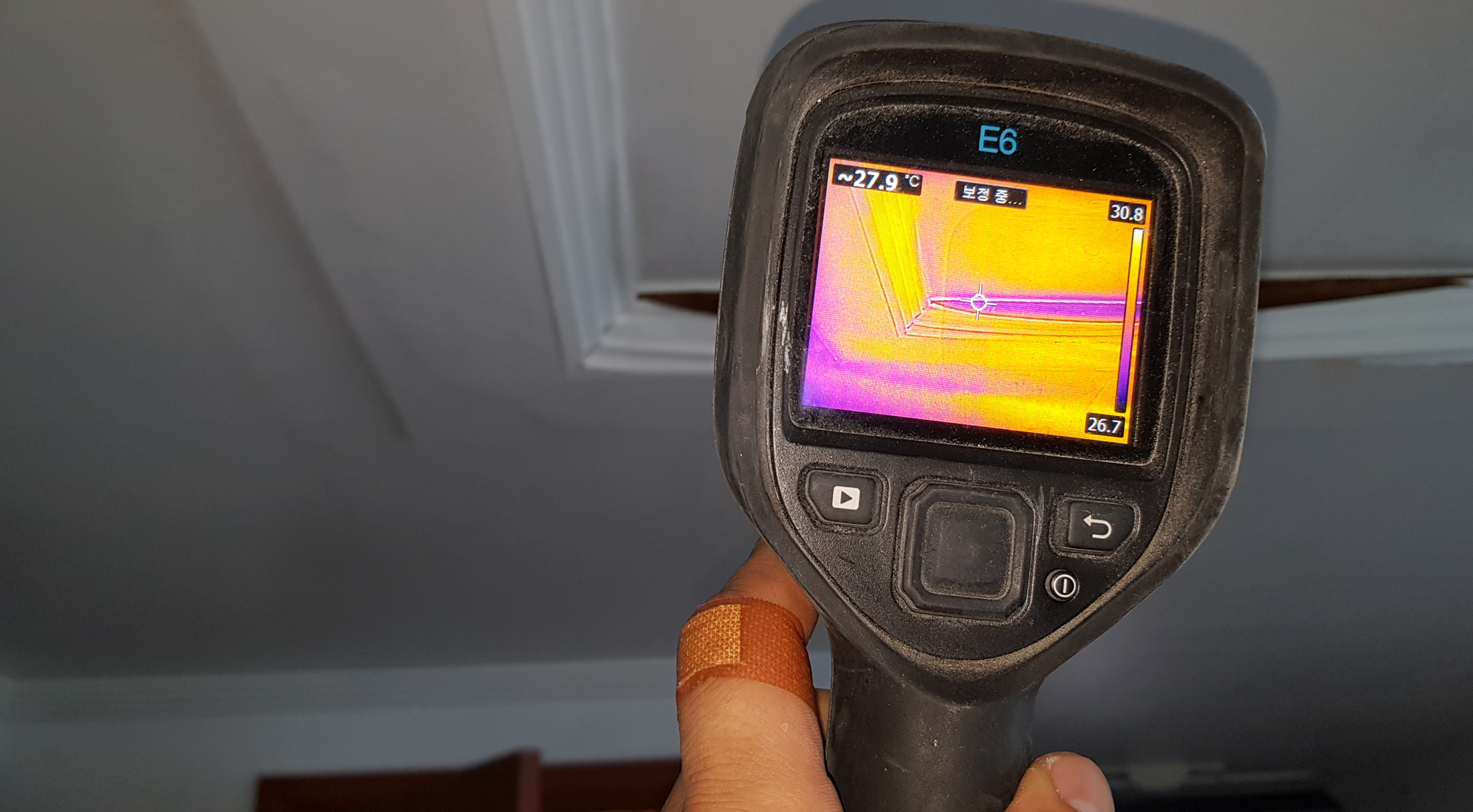 셋째로 열화상 카메라는 표면 온도를 측정하여 누수 범위를 파악하는 기기인데, 난방 배관이나 온수 배관에서 발생한 누수를 찾는 데 활용됩니다.
